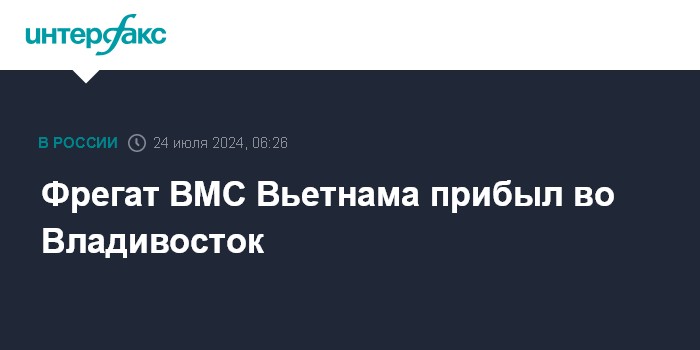 Москва. 24 июля. INTERFAX.RU - Фрегат "Хунг Дао" ВМС Вьетнама прибыл в среду во Владивосток с деловым заходом, сообщила пресс-служба Тихоокеанского флота (ТОФ).