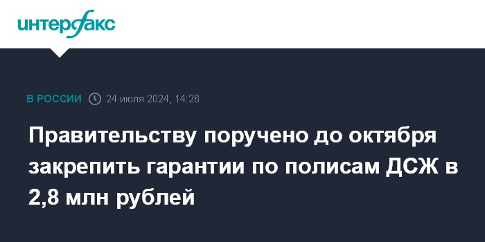 Правительству поручено до октября закрепить гарантии по полисам ДСЖ в 2,8 млн рублей