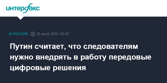 Путин считает, что следователям нужно внедрять в работу передовые цифровые решения
