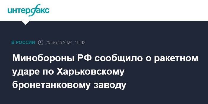 Минобороны РФ сообщило о ракетном ударе по Харьковскому бронетанковому заводу