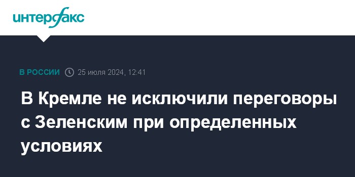 Москва. 25 июля. INTERFAX.RU - В Кремле допустили переговоры с Киевом при власти Владимира Зеленского, "но при определенных условиях".