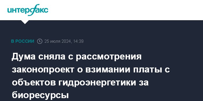 Дума сняла с рассмотрения законопроект о взимании платы с объектов гидроэнергетики за биоресурсы