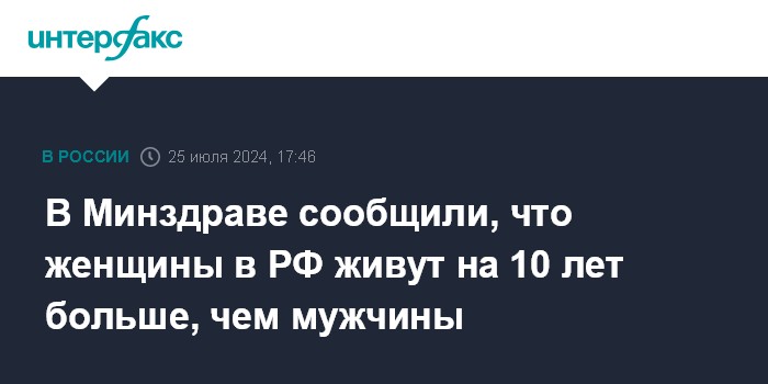 В Минздраве сообщили, что женщины в РФ живут на 10 лет больше, чем мужчины