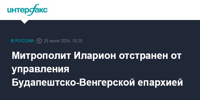 Москва. 25 июля. INTERFAX.RU - Синод Русской православной церкви в Москве отстранил митрополита Будапештского и Венгерского Илариона (Алфеева). Это следует из итогов Синода, опубликованных в четверг на сайте РПЦ.