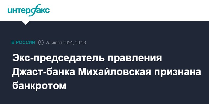 Экс-председатель правления Джаст-банка Михайловская признана банкротом