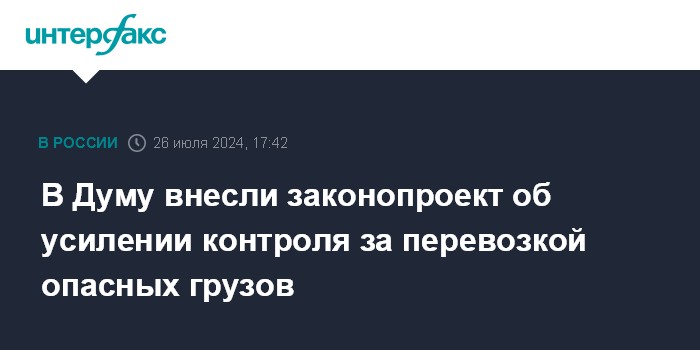 В Думу внесли законопроект об усилении контроля за перевозкой опасных грузов