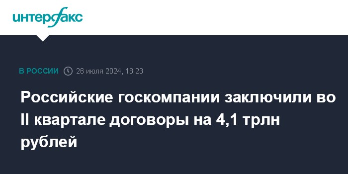 Российские госкомпании заключили во II квартале договоры на 4,1 трлн рублей