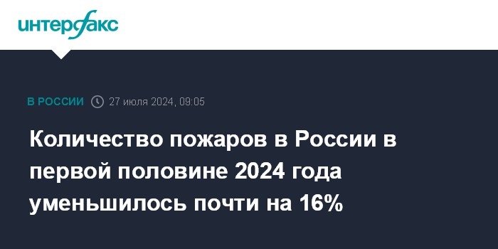 Количество пожаров в России в первой половине 2024 года уменьшилось почти на 16%