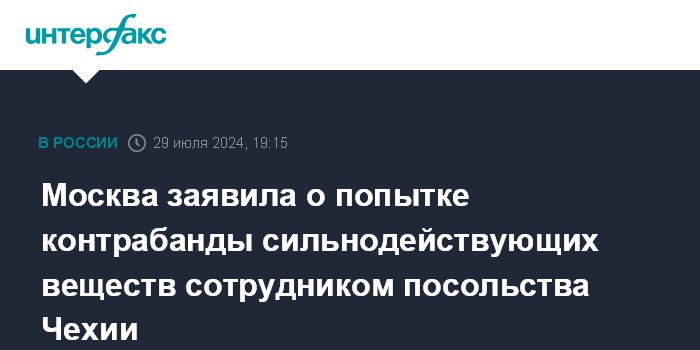 Москва заявила о попытке контрабанды сильнодействующих веществ сотрудником посольства Чехии