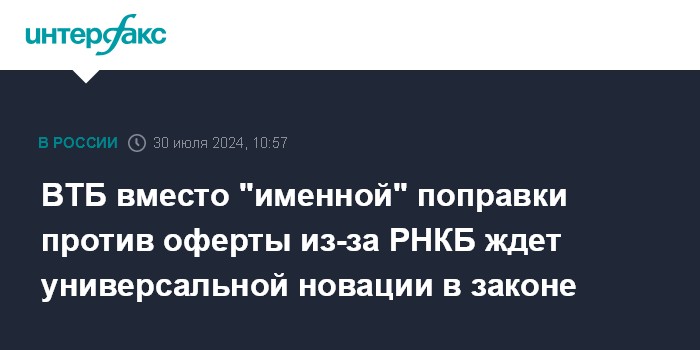 ВТБ вместо "именной" поправки против оферты из-за РНКБ ждет универсальной новации в законе
