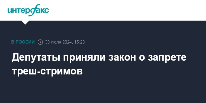 Москва. 30 июля. INTERFAX.RU - Госдума на заседании во вторник приняла в третьем, окончательном, чтении закон о запрете треш-стримов.