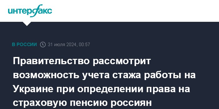 Правительство рассмотрит возможность учета стажа работы на Украине при определении права на страховую пенсию россиян