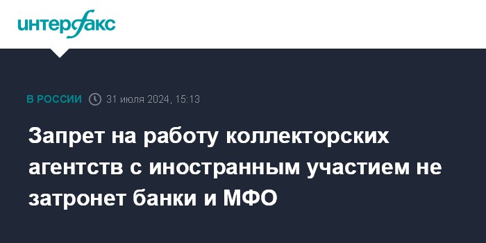 Запрет на работу коллекторских агентств с иностранным участием не затронет банки и МФО