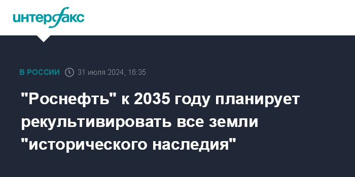 "Роснефть" к 2035 году планирует рекультивировать все земли "исторического наследия"