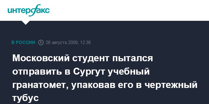 Московский студент пытался отправить в Сургут учебный гранатомет, упаковав его в чертежный тубус