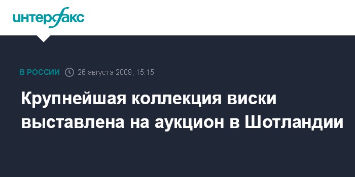 Эдинбург. 26 августа. INTERFAX.RU - Самая большая коллекция виски в мире, принадлежащая одному владельцу, будет продана с молотка в Шотландии, сообщает агентство Bloomberg со ссылкой на аукционный дом Bonhams.