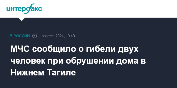 МЧС сообщило о гибели двух человек при обрушении дома в Нижнем Тагиле