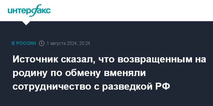 Источник сказал, что возвращенным на родину по обмену вменяли сотрудничество с разведкой РФ