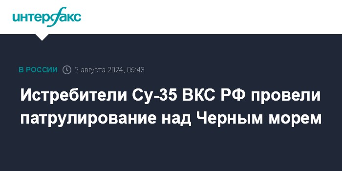 Москва. 2 августа. INTERFAX.RU - Российские многоцелевые истребители Су-35 выполнили плановое патрулирование над нейтральными водами Черного моря, сообщили в Минобороны РФ в пятницу.