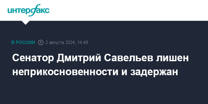 Сенатор Дмитрий Савельев лишен неприкосновенности и задержан