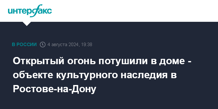 Открытый огонь потушили в доме - объекте культурного наследия в Ростове-на-Дону