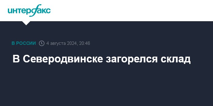 Москва. 4 августа. INTERFAX.RU - В Северодвинске Архангельской области загорелся склад, площадь пожара составляет 3 тыс. кв. метров, сообщает МЧС России в своем телеграм-канале в воскресенье.