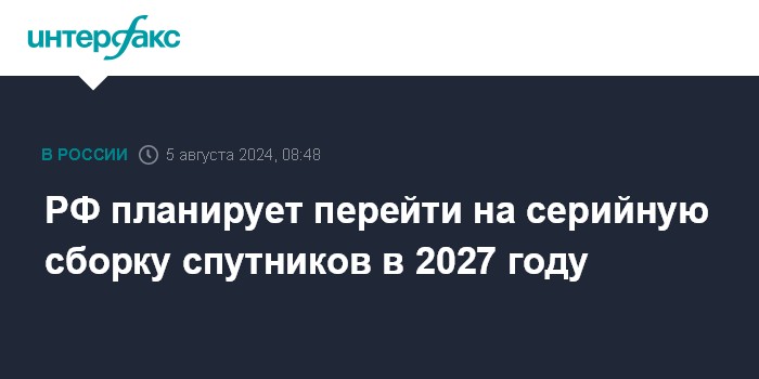 РФ планирует перейти на серийную сборку спутников в 2027 году