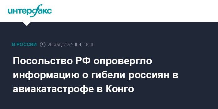 Москва. 26 августа. INTERFAX.RU - Посольство России в Браззавиле опровергает информацию о том, что на борту грузового самолета Ан-12, разбившегося в Республике Конго, были граждане РФ.