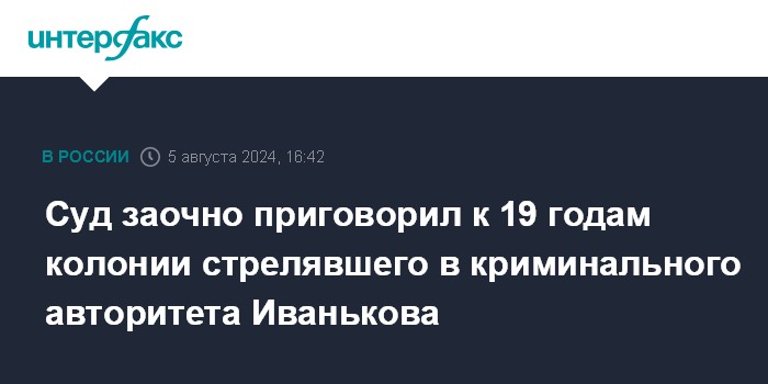 Суд заочно приговорил к 19 годам колонии стрелявшего в криминального авторитета Иванькова