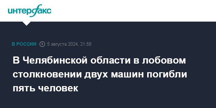 Москва. 5 августа. INTERFAX.RU - В Челябинской области в ДТП погибли пять человек, сообщили в федеральном МЧС.