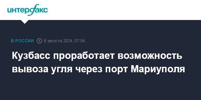 Москва. 6 августа. INTERFAX.RU - Врио губернатора Кемеровской области Илья Середюк поручил региональным Минугля и Минтранспорта проработать с угольными компаниями Кузбасса возможность отправки продукции через порт Мариуполь (ДНР), сообщает пресс-служба правительства региона.