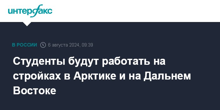"Студенческие строительные отряды смогут принимать участие в возведении объектов инфраструктуры на территориях Дальневосточного федерального округа и Арктической зоны", - говорится в сообщении.