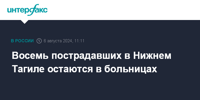 "На стационарном лечении остаются восемь пострадавших в Нижнем Тагиле, в том числе трое детей. Состояние двух взрослых и одного ребенка врачи оценивают как тяжелое", - говорится в сообщении.
