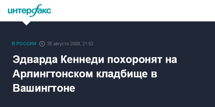 Лондон. 26 августа. INTERFAX.RU - Сенатор Эдвард Кеннеди будет похоронен на Арлингтонском национальном кладбище в Вашингтоне, где ранее были похоронены его братья 35-й президент США Джон Фицджеральд Кеннеди и сенатор Роберт Кеннеди, сообщает BBC.