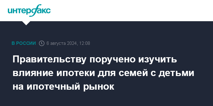 Правительству поручено изучить влияние ипотеки для семей с детьми на ипотечный рынок