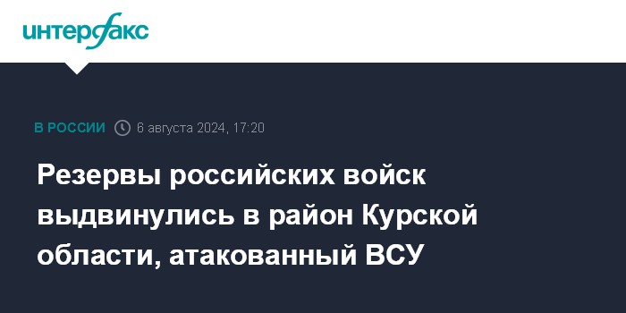 "В район боестолкновения выдвинулись резервы российской группировки войск на курском направлении", - сообщили в ведомстве во вторник.