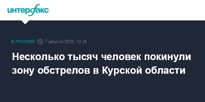 Москва. 7 августа. INTERFAX.RU - Врио губернатора Курской области Алексей Смирнов заявил, что за сутки зону обстрелов в Курской области покинули несколько тысяч человек.