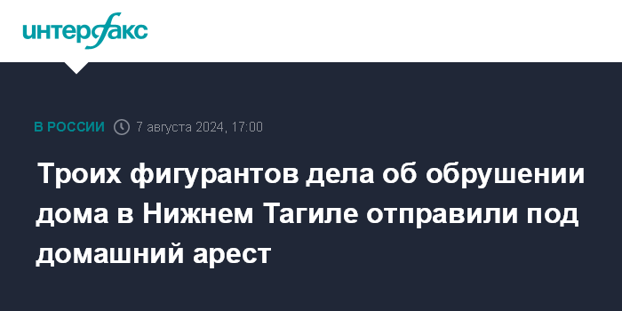 Троих фигурантов дела об обрушении дома в Нижнем Тагиле отправили под домашний арест