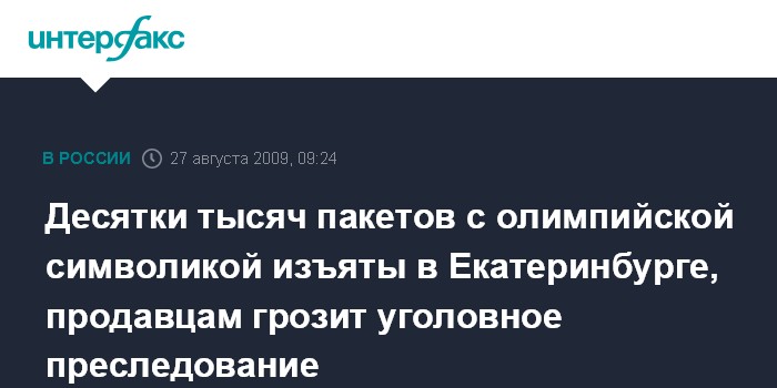 Десятки тысяч пакетов с олимпийской символикой изъяты в Екатеринбурге, продавцам грозит уголовное преследование