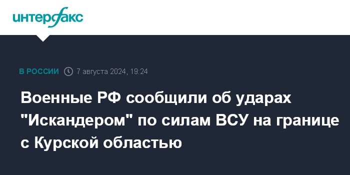 Военные РФ сообщили об ударах "Искандером" по силам ВСУ на границе с Курской областью