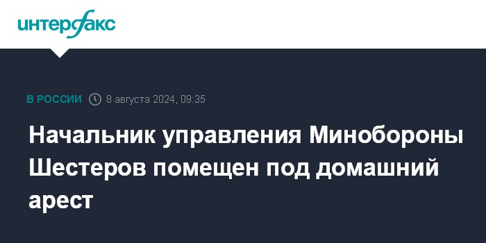 Начальник управления Минобороны Шестеров помещен под домашний арест