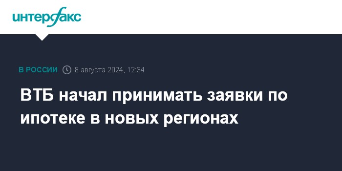 ВТБ начал принимать заявки по ипотеке в новых регионах