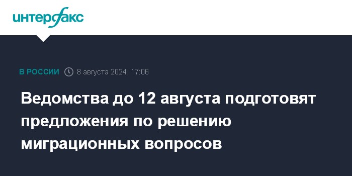 Ведомства до 12 августа подготовят предложения по решению миграционных вопросов