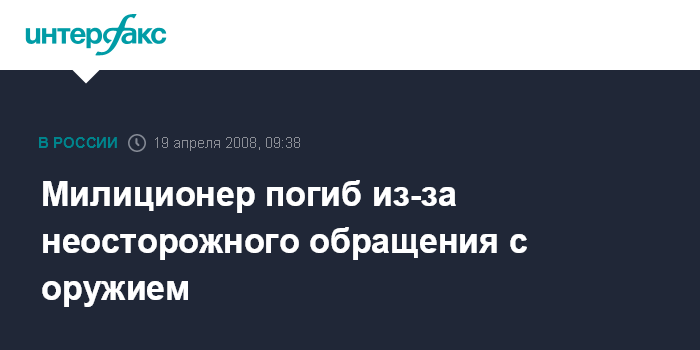 Грозный. 19 апреля. ИНТЕРФАКС - В Чечне в результате неосторожного обращения с оружием погиб милиционер, сообщили "Интерфаксу" в правоохранительных органах республики.