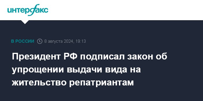 Президент РФ подписал закон об упрощении выдачи вида на жительство репатриантам