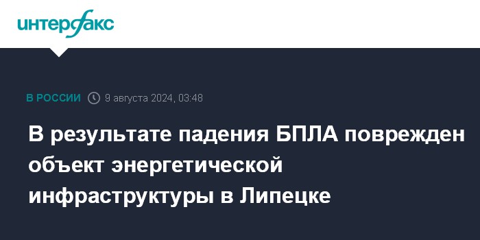 Москва. 9 августа. INTERFAX.RU - Губернатор Липецкой области Игорь Артамонов сообщил о повреждении объекта энергетической инфраструктуры.