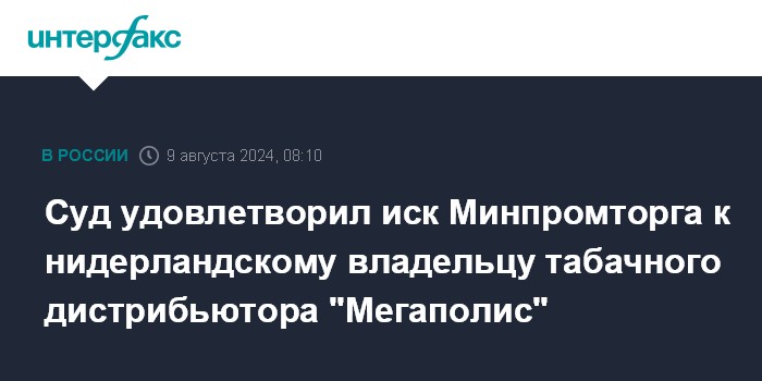 Суд удовлетворил иск Минпромторга к нидерландскому владельцу табачного дистрибьютора "Мегаполис"