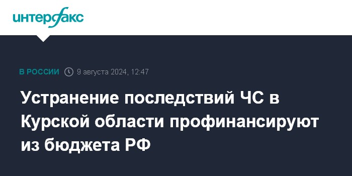 "Наделение ЧС в Курской области статусом федерального характера означает, что теперь устранение ее последствий в основном финансируется из федерального бюджета. Поэтому у ФОИВов (в рамках курируемых сфер) возникают основания для внесения предложений по различного рода компенсациям региону", - говорится в сообщении.
