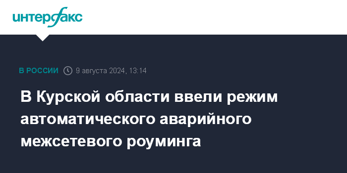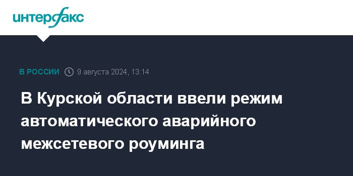Москва. 9 августа. INTERFAX.RU - На территории Курской области ввели режим автоматического аварийного межсетевого роуминга в связи с объявлением режима ЧС федерального значения, сказал журналистам глава Минцифры Максут Шадаев.
