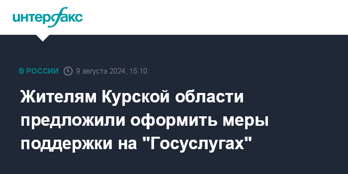 Москва. 9 августа. INTERFAX.RU - Пострадавшие при обстрелах жители Курской области могут оформить меры поддержки на портале "Госуслуги", сообщил телеграм-канал Минцифры.